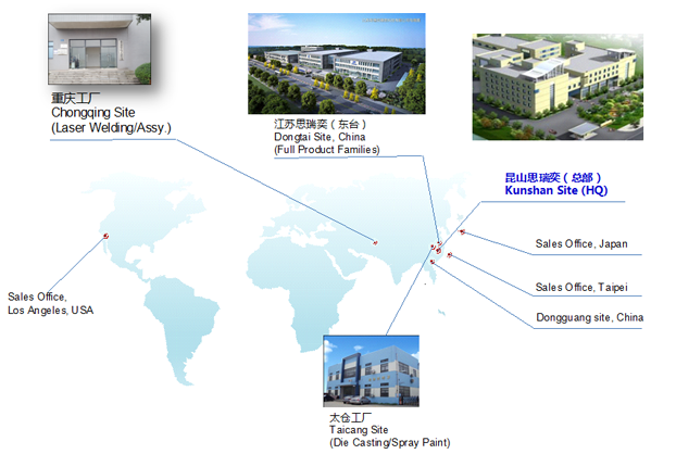 思瑞奕電子有限公司成立于2010年10月,注冊資金7500萬人民幣,總部位于江蘇省昆山市,在重慶、江蘇東臺、江蘇太倉設(shè)有分廠,公司于2011年通過ISO9001/ISO14001認證,2013年通過高新技術(shù)企業(yè)和TS16949(IATF)體系認定,2016年先后通過知識產(chǎn)權(quán)管理體系認證、安全生產(chǎn)標準化認證,2017年獲頒江蘇省民營科技企業(yè)、2018年先后獲得蘇州市人民政府認定企業(yè)技術(shù)中心、科技部認定中小型科技企業(yè)、江蘇省最具成長性高科技企業(yè)、2020年獲得江蘇省人民政府認定企業(yè)技術(shù)中心、2021年獲得蘇州市瞪羚計劃入庫企業(yè)、江蘇省省級工程技術(shù)研究中心、江蘇省專精特新中小企業(yè)等榮譽稱號......